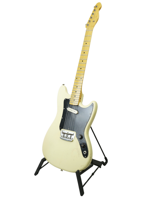 Presenting the 1978 Fender MusicMaster in Olympic White. This vintage gem boasts a compact and lightweight body, a short-scale design, and an easy-to-use control system. Despite its small size, the MusicMaster delivers exceptional sound quality and craftsmanship. The guitar's design allows for a rich, vintage tone that remains robust and full even after years of play.