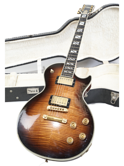 An extravagant take on the classic Les Paul silhouette, this 2006 Gibson Les Paul Supreme in Desert Burst blends opulent design with rock-solid tone and exceptional playability. Featuring AAAA-grade flamed maple carved top and back, a chambered mahogany body core, and premium appointments throughout, the Supreme lives up to its name in every detail.