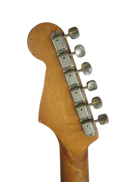 Tuners are upgraded Grover Deluxe, and the original trem block and hardware show natural ageing but are fully functional. The original 3-way switch has been replaced with a 5-way switch, it also has replaced knobs and nut.